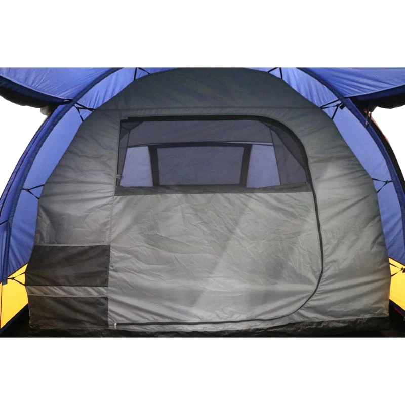 4-person Tunnel Camping Tent fra Urberg er et romslig tunneltelt for fire personer. Teltet har en stor apsis med stativhøyde som gir god plass til sosialt samvær og til å lagre pakningen. Det indre teltet har flere oppbevaringslommer for små gjenstander og kan kobles fra det ytre teltet for å få enda mer plass. Enkel montering takket være de fargekodede teltstengene og hele teltet kan reises uten å måtte fjerne innerteltet.