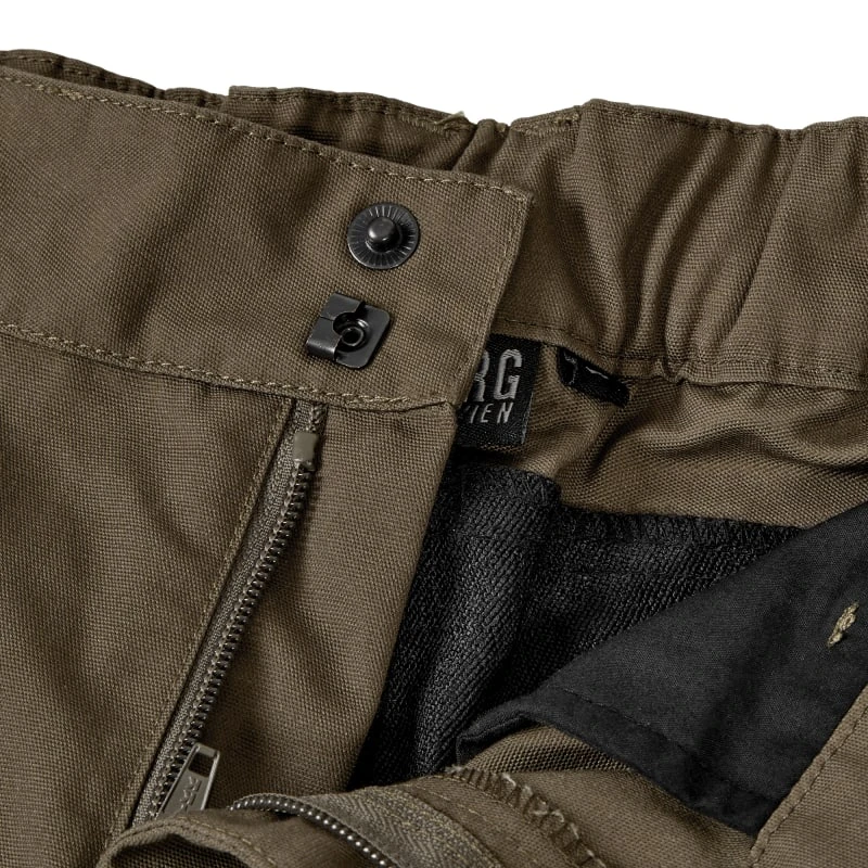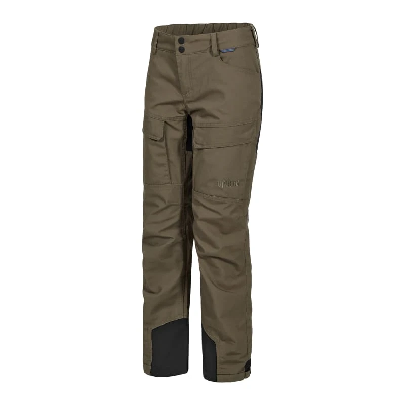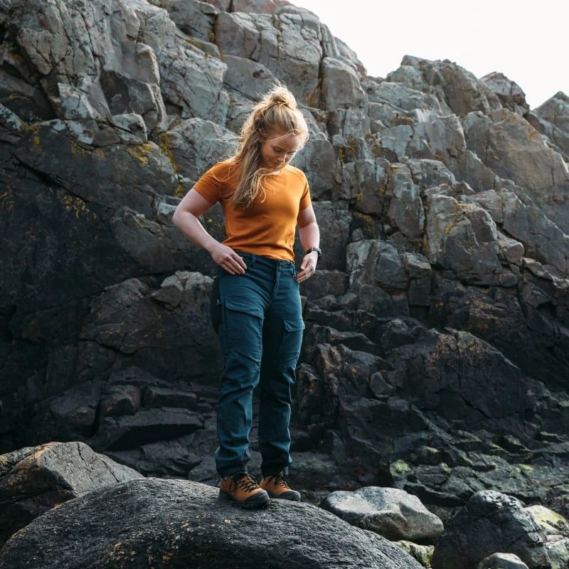 Diabas VHiking Pants Women’s fra Urberg er holdbare fotturer bukser for damer. Buksen er laget av bomull og polyester vevd stoff med elastiske partier over rumpa, knær og nedre del av buksebena for optimal bevegelsesfrihet. Midjen har elastiske og beltehemper for en perfekt passform. Foran er to åpne håndlommer, to lårlommer med deksel og en glidelåslomme bak. En av lårlommene har også en innvendig lomme for mobilen. På sidene er det ventilasjonsglidelåser som kan åpnes hvis du trenger ekstra ventilasjon. Den forsterkede grensømmen er beveget fremover for ikke å gnage og i benenden er det også forsterkninger som forhindrer at stoffet går i stykker når det beveger seg i lite terreng.