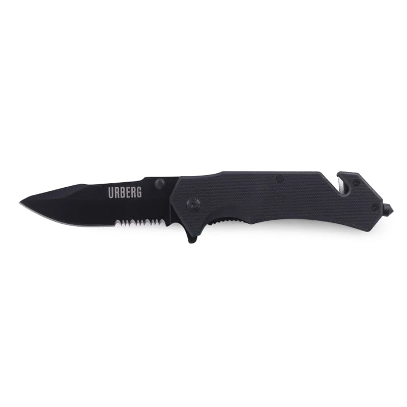 Folding Knife er en allsidig kniv fra Urberg med delvis sagtannet blad, glassknuser og belteskjærer. Kniven har et gripevennlig G10-håndtak og er perfekt for campingplassen, fotturen eller utflukten.