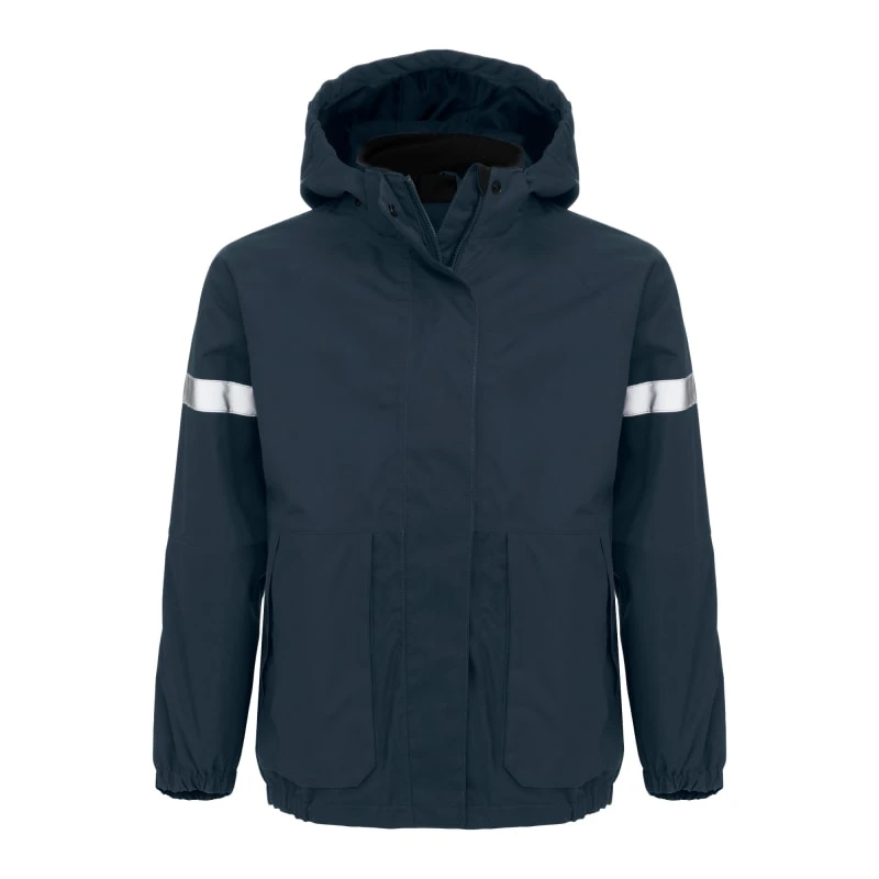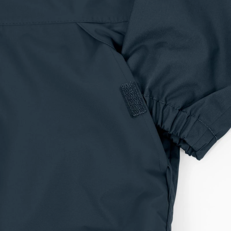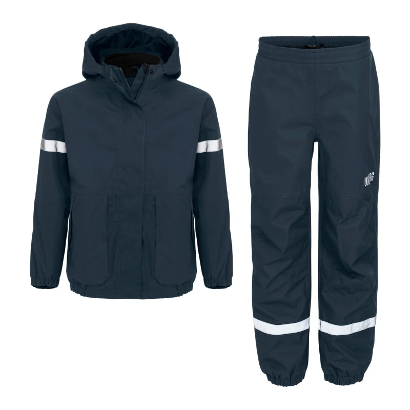 Vågstranda 2 Layer Set Kids fra Urberg er et vanntett regnsett for barn. Regnsettet har teipede sømmer og er impregnert med Rudolf ECO Bionic DWR som støter bort vann og holder barnet tørt uansett vær. Jakken har glidelås foran med borrelås og 2 trykknapper, samt avtakbar hette med trykknapper. Buksen har justerbar midje med strikk og knapper, og elastiske benavslutninger med knappjusteringer under foten. Både jakken og buksen har flere reflekser som gjør barnet godt synlig.