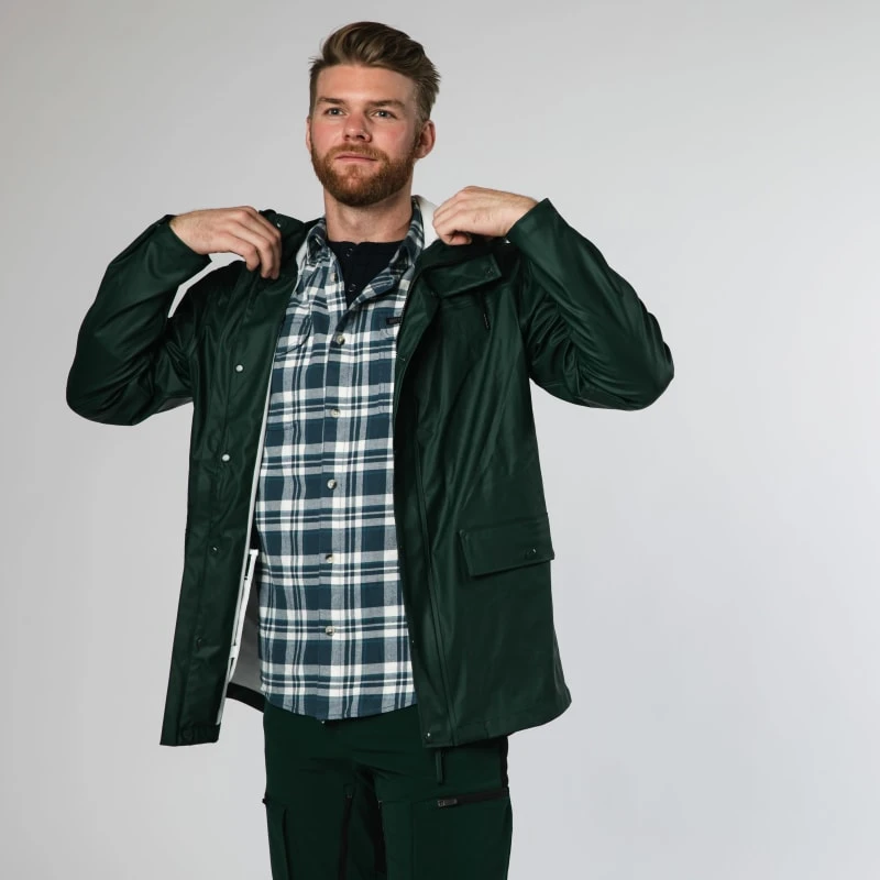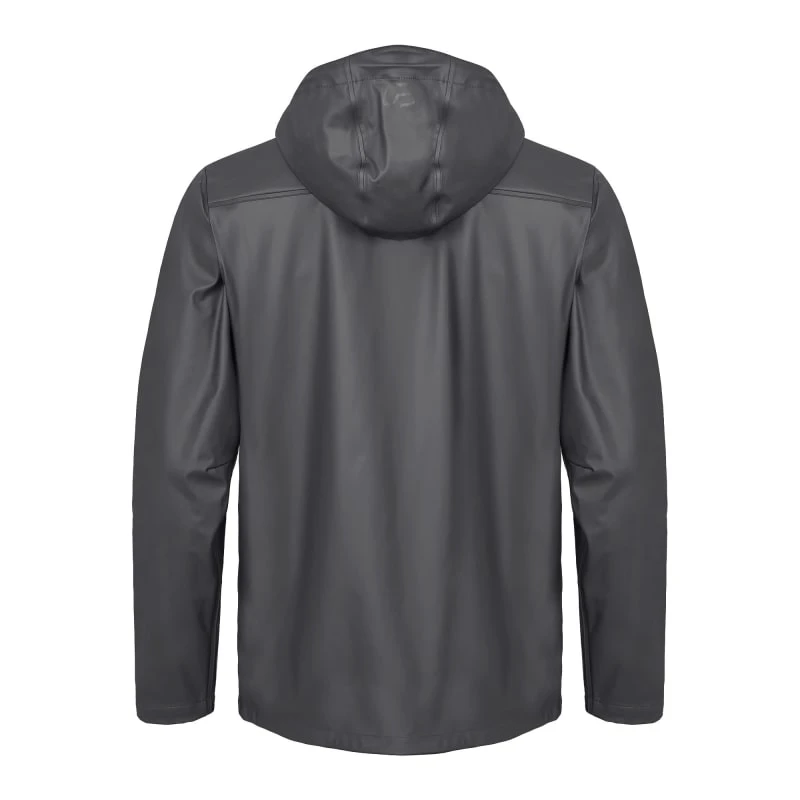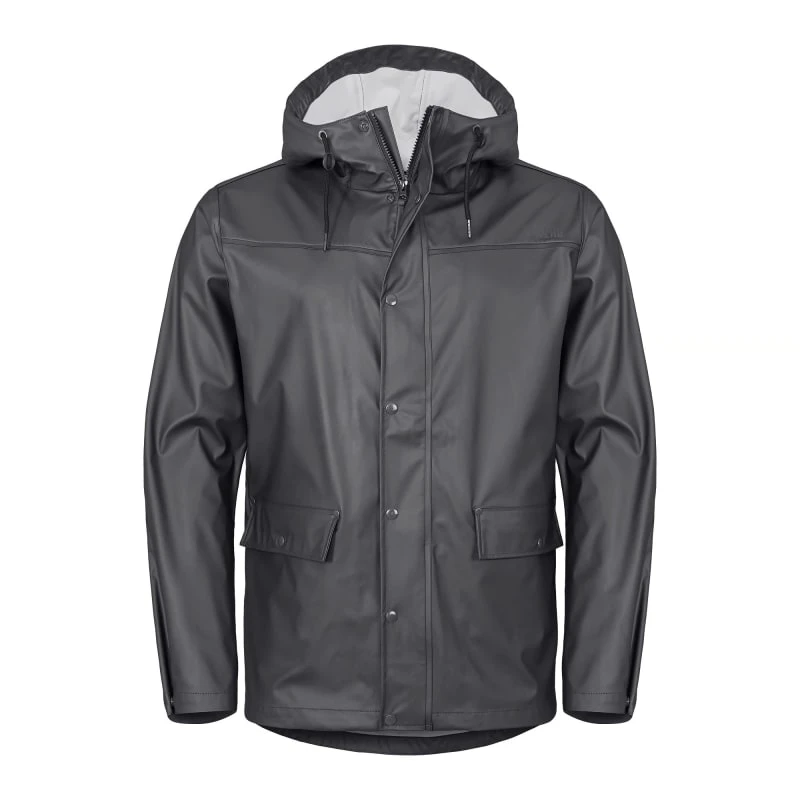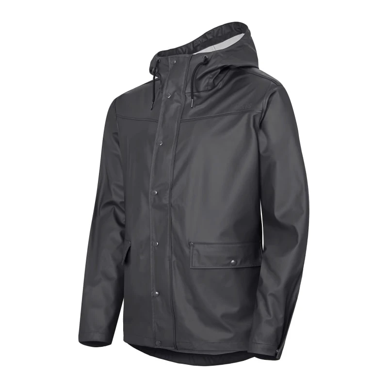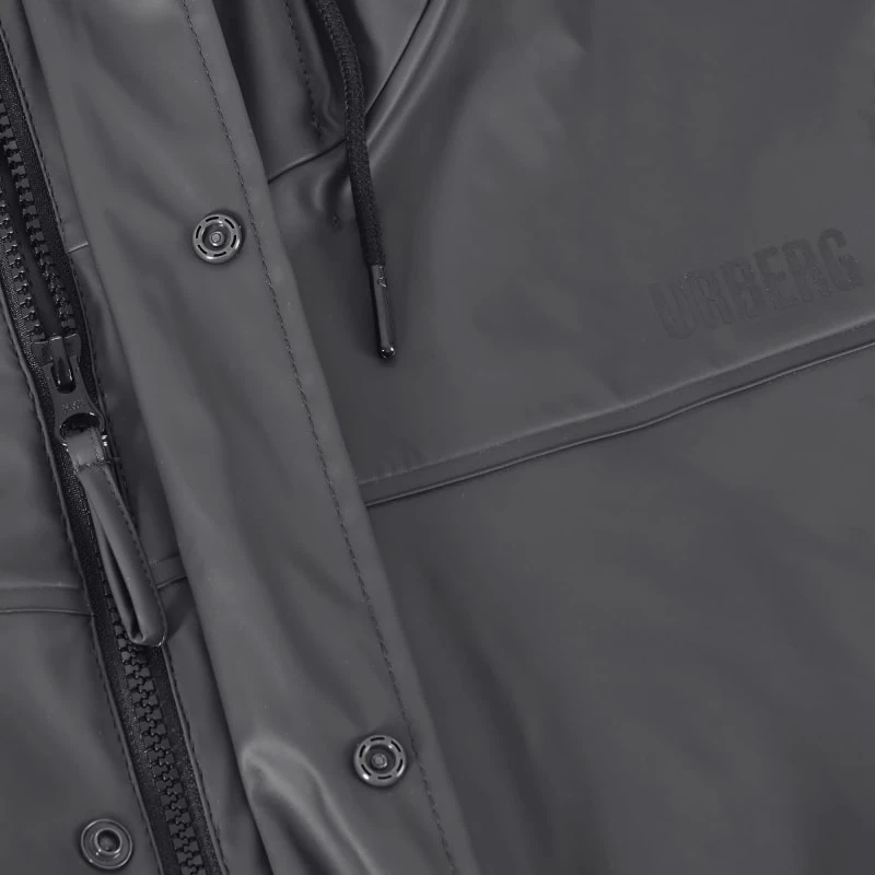 Malmefjorden PU Jacket Men fra Urberg er en regnjakke for menn i slitesterk polyester med resirkulert PU-belegg og sveisede sømmer. Jakken har et tynt trikotfôr på innsiden for en optimal komfort. På framsiden er det YKK-glidelås med et beskyttende stormdeksel som lukkes med trykknapper. Jakken har også to lommer med lokk og knapp for å holde alle dine eiendeler tørre. Hetten kan justeres med snor. Urberg-logo på brystet og i hetten.