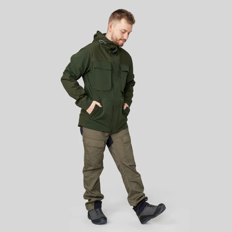 Nordenskiold Trekking Jacket Men’s fra Urberg er en luftig herrejakke for sommerturer. Jakken er laget av et elastisk og bøyelig materiale av bomull og polyester med en impregnering på overflaten som avviser fuktighet. Skuldrene, albuene og bunnen er forsterket for å beskytte mot slitasje. Det er to brystlommer, hvorav den ene er lett tilgjengelig selv når du bruker ryggsekk, og to glidelåslommer i midjen samt en innerlomme. Under ermene er ventilasjonsglidelåser som kan åpnes når temperaturen stiger, og toveis glidelåsen foran hjelper med ekstra ventilasjon.